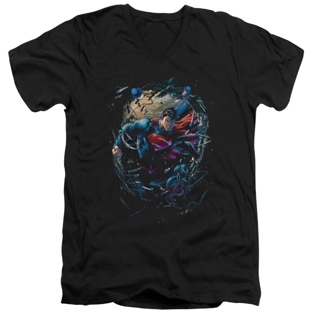 Superman Breaking Space Men's 30/1 Cotton Slim V-Neck T