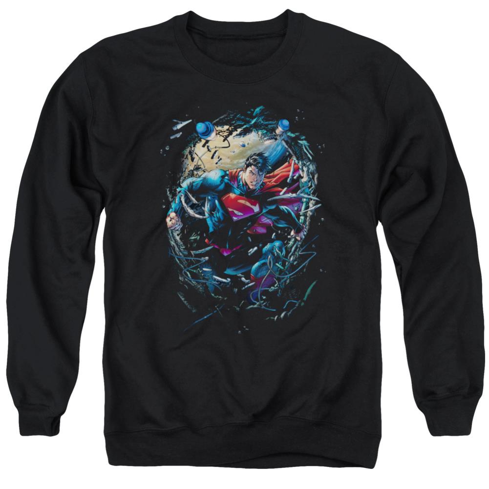 Superman Breaking Space Men's Crewneck 50 50 Poly LS T