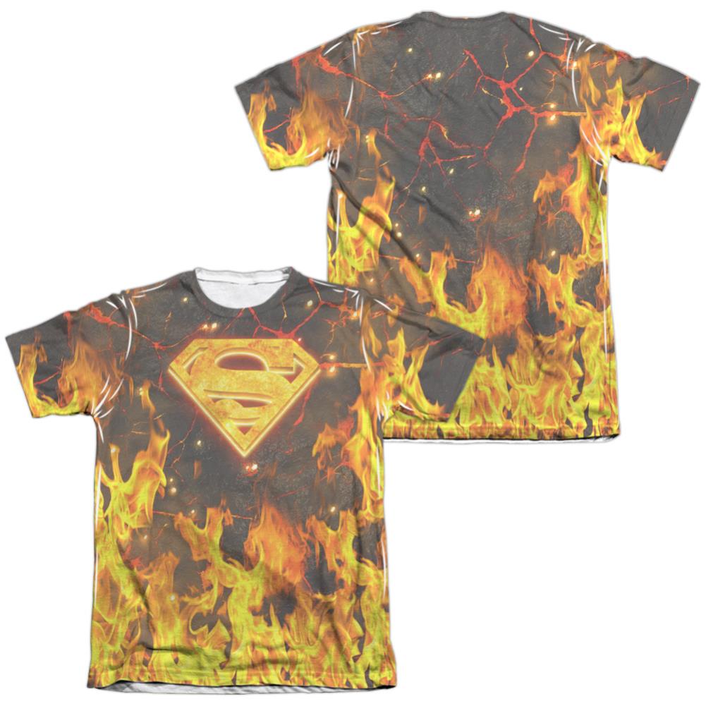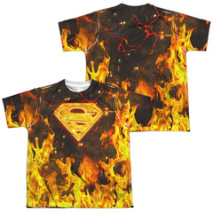 Superman Fire Logo (Front/Back Print) Youth Regular Fit Poly SS T